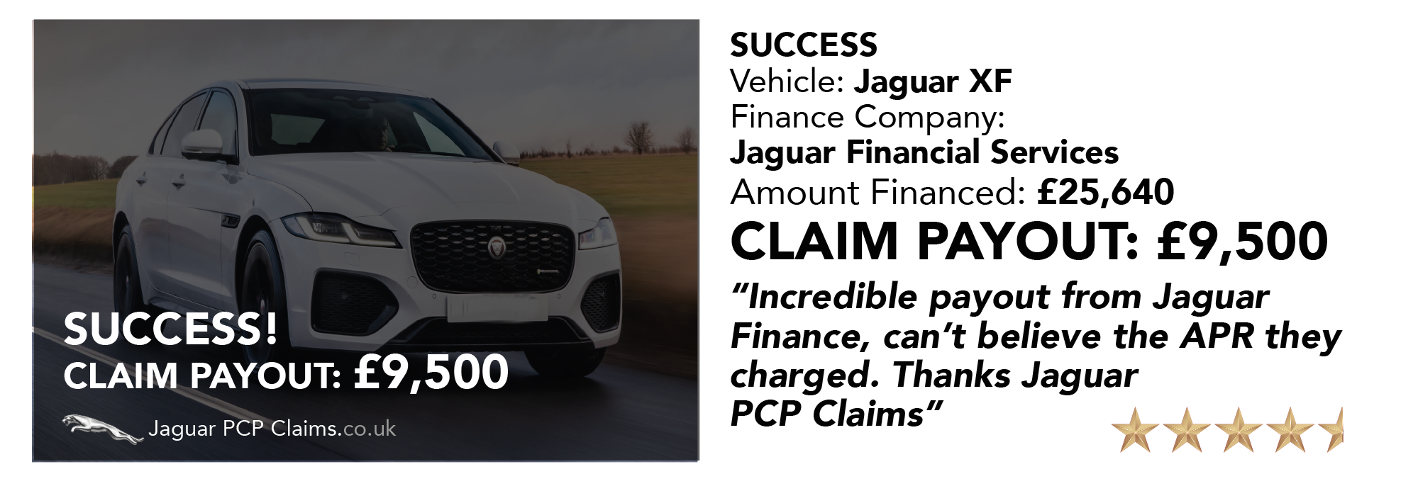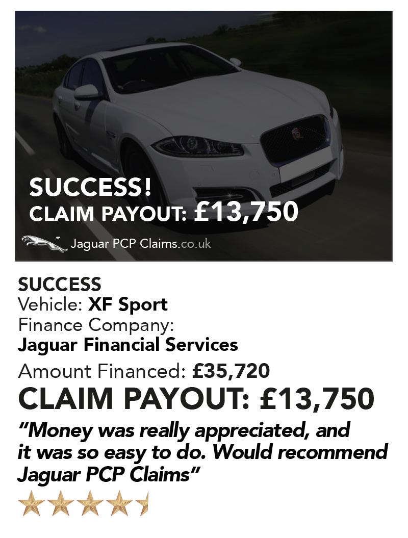This depends on the amount that you financed and the APR, generally the higher the amount financed the larger the amount of claim. Whether you had a PCP or Hire Purchase, our average pay-out on Jaguar’s is £13,500.